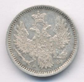 Лицевая сторона — новый гербовый орел с поднятыми крыльями, оборотная —обозначение номинала (5 копеекъ), окруженное венком из лавровой и дубовой ветвей и дата. Проба — 868, нормативный вес — 1,04 грамма.