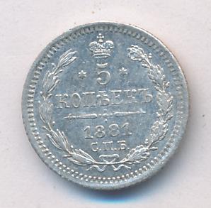 Лицевая сторона — гербовый орел, оборотная —обозначение номинала (5 копеекъ), окруженное венком из лавровой и дубовой ветвей и дата.