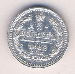 Лицевая сторона — гербовый орел, оборотная —обозначение номинала (5 копеекъ), окруженное венком из лавровой и дубовой ветвей и дата.
