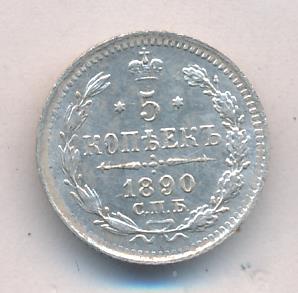 Лицевая сторона — гербовый орел, оборотная —обозначение номинала (5 копеекъ), окруженное венком из лавровой и дубовой ветвей и дата.