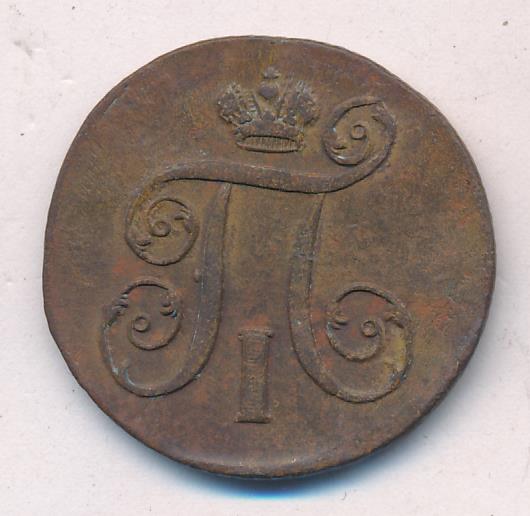 Лицевая сторона — вензель Павла I под короной, оборотная — номинал (1 копейка) и дата. Нормативный вес — 10,24 грамма, гурт — шнур.