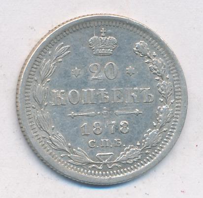 Лицевая сторона — гербовый орел, оборотная —обозначение номинала (20 копеекъ), окруженное венком из лавровой и дубовой ветвей и дата.
