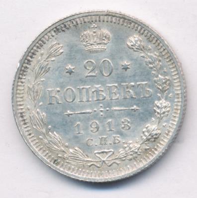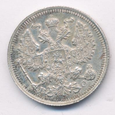 Лицевая сторона — гербовый орел, оборотная —обозначение номинала (20 копеекъ), окруженное венком из лавровой и дубовой ветвей и дата.