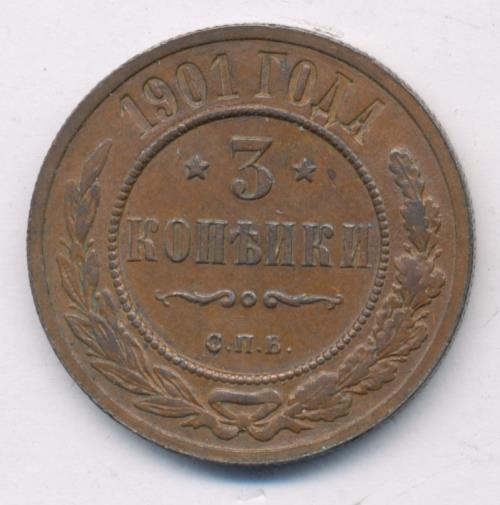 Лицевая сторона — двуглавый орел, надпись МЕДНАЯ РОССIЙСКАЯ МОНЕТА и обозначение номинала (три копейки); оборотная — обозначение номинала (3 копейки) в бусовом ободке и дата. Нормативный вес — 9,83 грамма, гурт рубчатый.