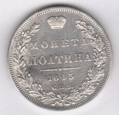 Лицевая сторона — новый гербовый орел с поднятыми крыльями и надпись «ЧИСТОГО СЕРЕБРА 2 ЗОЛОТНИКА 10 ДОЛЕЙ», оборотная — надпись «МОНЕТА ПОЛТИНА», окруженная венком из лавровой и дубовой ветвей и дата.