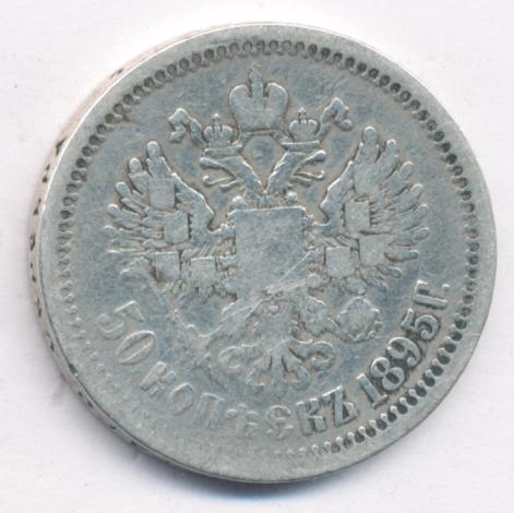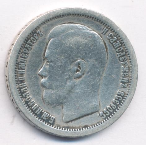 Лицевая сторона — портрет Николая II в круговой надписи «Б.М. НИКОЛАЙ II ИМПЕРАТОРЪ И САМОДЕРЖЕЦЪ ВСЕРОСС», оборотная — двуглавый орел, обозначение номинала (50 копеекъ) и дата.