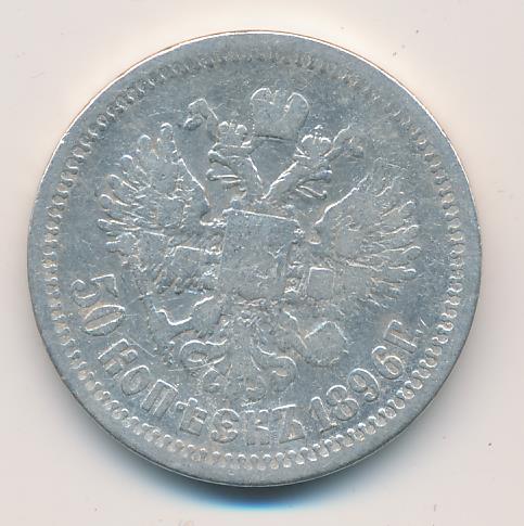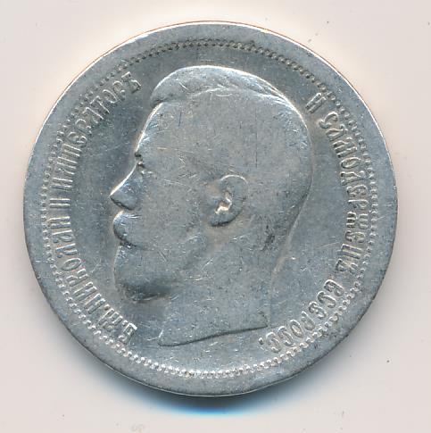 Лицевая сторона — портрет Николая II в круговой надписи «Б.М. НИКОЛАЙ II ИМПЕРАТОРЪ И САМОДЕРЖЕЦЪ ВСЕРОСС», оборотная — двуглавый орел, обозначение номинала (50 копеекъ) и дата.