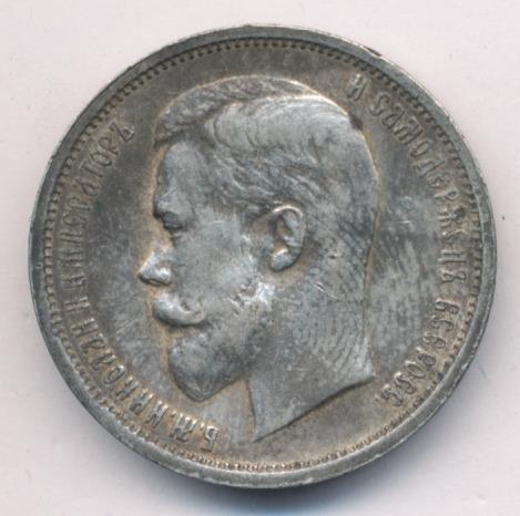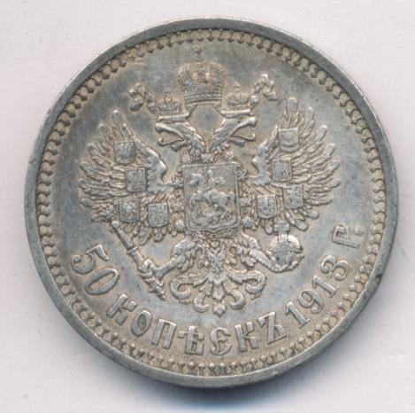 Лицевая сторона — портрет Николая II в круговой надписи «Б.М. НИКОЛАЙ II ИМПЕРАТОРЪ И САМОДЕРЖЕЦЪ ВСЕРОСС», оборотная — двуглавый орел, обозначение номинала (50 копеекъ) и дата.