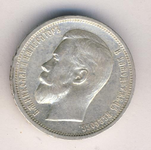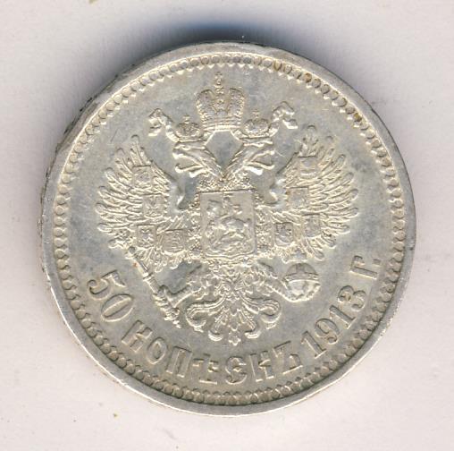 Лицевая сторона — портрет Николая II в круговой надписи «Б.М. НИКОЛАЙ II ИМПЕРАТОРЪ И САМОДЕРЖЕЦЪ ВСЕРОСС», оборотная — двуглавый орел, обозначение номинала (50 копеекъ) и дата.