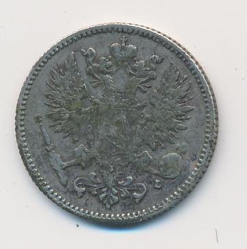 Лицевая сторона — российский двуглавый орел с гербом Великого княжества Финляндского на груди, оборотная — номинал и дата в венке из дубовых листьев. Проба — 750, нормативный вес — 2,55 грамма, гурт рубчатый.