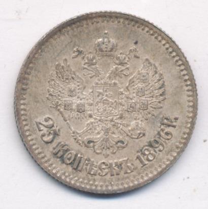 Лицевая сторона — портрет Николая II в круговой надписи «Б.М. НИКОЛАЙ II ИМПЕРАТОРЪ И САМОДЕРЖЕЦЪ ВСЕРОСС», оборотная — двуглавый орел, обозначение номинала (25 копеекъ) и дата.