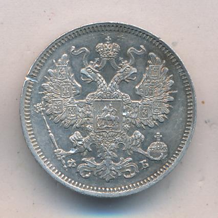 Лицевая сторона — гербовый орел, оборотная —обозначение номинала (20 копеекъ), окруженное венком из лавровой и дубовой ветвей и дата.