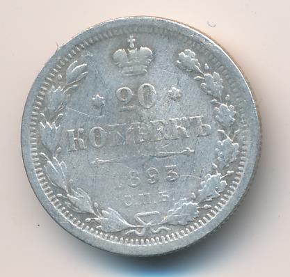 Лицевая сторона — гербовый орел, оборотная —обозначение номинала (20 копеекъ), окруженное венком из лавровой и дубовой ветвей и дата.