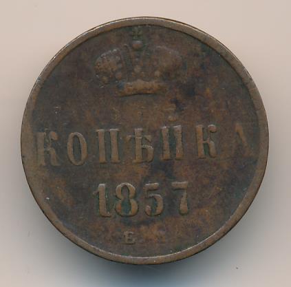 Лицевая сторона — вензель Николая I, оборотная — обозначение номинала (копейка) и дата. Нормативный вес — 5,12 грамма, гурт гладкий.