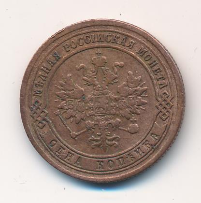 Лицевая сторона — двуглавый орел, надпись МЕДНАЯ РОССIЙСКАЯ МОНЕТА и обозначение номинала (одна копейка); оборотная — обозначение номинала (1 копейка) в бусовом ободке и дата. Нормативный вес — 3,28 грамма, гурт рубчатый.