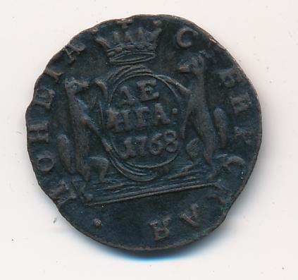 Лицевая сторона - два соболя поддерживают щит с обозначением номинала (денга) под короной, надпись «СИБИРСКАЯ МОНЕТА». Оборотная — вензель Екатерины II в венке из пальмовой и лавровой ветвей. Гурт — шнур, вес — 3,28 грамма.