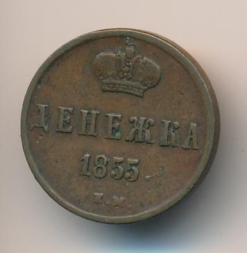 Лицевая сторона — вензель Николая I, оборотная — обозначение номинала (денежка) и дата. Нормативный вес — 2,56 грамма, гурт гладкий.