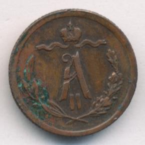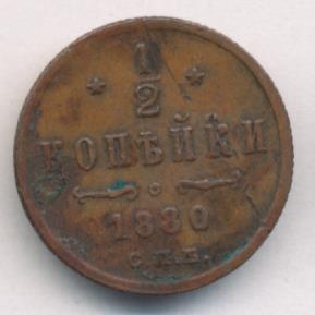 Лицевая сторона — вензель Александра II в венке из лавровой и дубовой ветвей; оборотная — обозначение номинала (1/2 копейки) и дата. Нормативный вес — 1,64 грамма, гурт рубчатый.