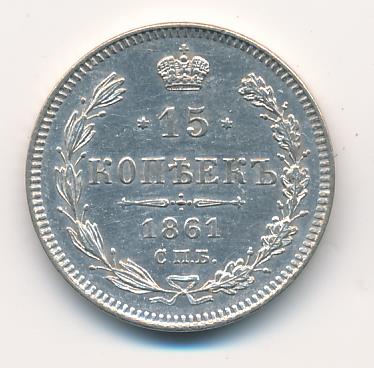 В 1861 году из-за перегруженности Петербургского двора заказы на чеканку части 20, 15 и 10 копеек размещаются на Парижском и Страсбургском монетных дворах. На этих монетах тот же знак двора СПБ, но отсутствует знак минцмейстера.