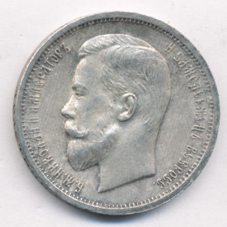 Лицевая сторона — портрет Николая II в круговой надписи «Б.М. НИКОЛАЙ II ИМПЕРАТОРЪ И САМОДЕРЖЕЦЪ ВСЕРОСС», оборотная — двуглавый орел, обозначение номинала (50 копеекъ) и дата.