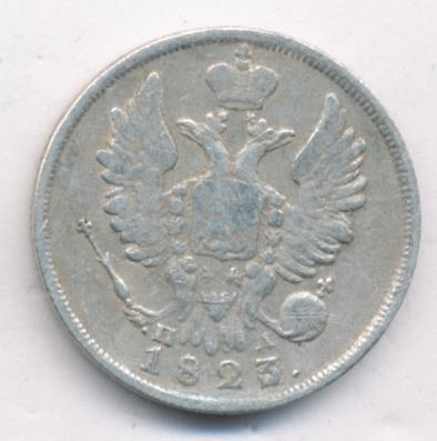 Лицевая сторона - двуглавый орел и дата, оборотная — обозначение номинала (20 копеекъ) в венке из лавровой и дубовой ветвей. Проба до 1813 года — 750, нормативный вес — 4,80 грамма; после 1813 года — проба 868, нормативный вес — 4,15 грамма.