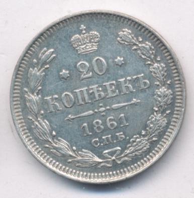 В 1861 году из-за перегруженности Петербургского двора заказы на чеканку части 20, 15 и 10 копеек размещаются на Парижском и Страсбургском монетных дворах. На этих монетах тот же знак двора СПБ, но отсутствует знак минцмейстера.