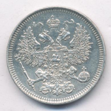 Лицевая сторона — гербовый орел, оборотная —обозначение номинала (20 копеекъ), окруженное венком из лавровой и дубовой ветвей и дата.