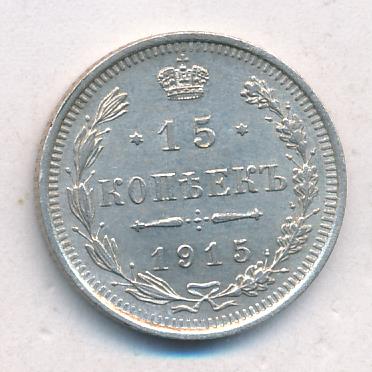 Лицевая сторона — гербовый орел, оборотная —обозначение номинала (15 копеекъ), окруженное венком из лавровой и дубовой ветвей и дата.