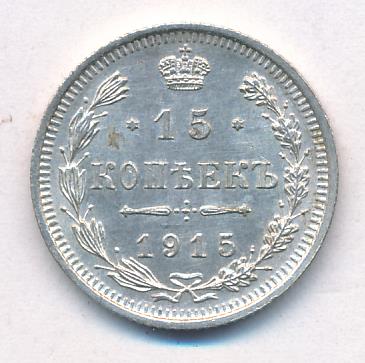 Лицевая сторона — гербовый орел, оборотная —обозначение номинала (15 копеекъ), окруженное венком из лавровой и дубовой ветвей и дата.