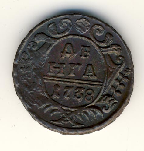 С 1730 года, как и 30 лет назад, медь возвращает себе статус разменных долей серебряной копейки — печатаются только денги и полушки. Указ от 22 декабря 1730 года регламентирует их выпуск на 10 рублей из пуда меди. Петровские копейки 20-рублевой стопы перечеканиваются в денги, а копейки Петра II 40-рублевой стопы — в полушки.