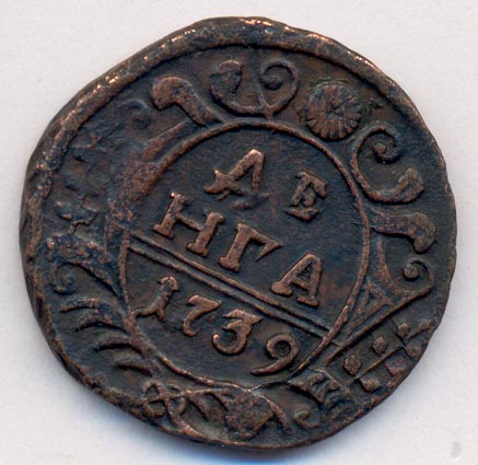 С 1730 года, как и 30 лет назад, медь возвращает себе статус разменных долей серебряной копейки — печатаются только денги и полушки. Указ от 22 декабря 1730 года регламентирует их выпуск на 10 рублей из пуда меди. Петровские копейки 20-рублевой стопы перечеканиваются в денги, а копейки Петра II 40-рублевой стопы — в полушки.
