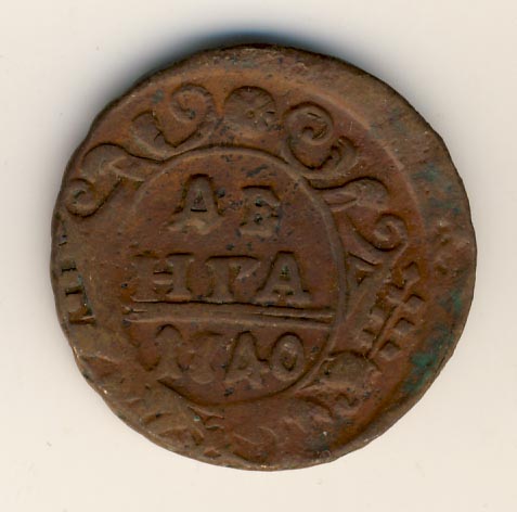 С 1730 года, как и 30 лет назад, медь возвращает себе статус разменных долей серебряной копейки — печатаются только денги и полушки. Указ от 22 декабря 1730 года регламентирует их выпуск на 10 рублей из пуда меди. Петровские копейки 20-рублевой стопы перечеканиваются в денги, а копейки Петра II 40-рублевой стопы — в полушки.