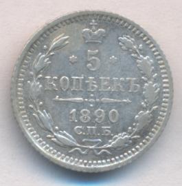 Лицевая сторона — гербовый орел, оборотная —обозначение номинала (5 копеекъ), окруженное венком из лавровой и дубовой ветвей и дата.