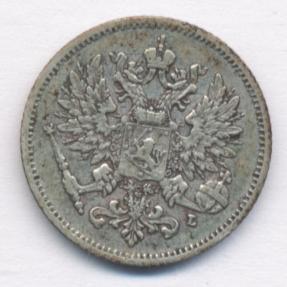 Лицевая сторона — российский двуглавый орел с гербом Великого княжества Финляндского на груди, оборотная — номинал и дата в венке из дубовых листьев. Проба — 750, нормативный вес — 1,27 грамма, гурт рубчатый.