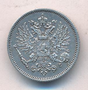Лицевая сторона — российский двуглавый орел с гербом Великого княжества Финляндского на груди, оборотная — номинал и дата в венке из дубовых листьев. Проба — 750, нормативный вес — 1,27 грамма, гурт рубчатый.