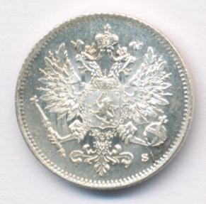 Лицевая сторона — российский двуглавый орел с гербом Великого княжества Финляндского на груди, оборотная — номинал и дата в венке из дубовых листьев. Проба — 750, нормативный вес — 1,27 грамма, гурт рубчатый.