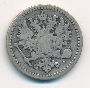 Лицевая сторона — российский двуглавый орел с гербом Великого княжества Финляндского на груди, оборотная — номинал и дата в венке из дубовых листьев. Проба — 750, нормативный вес — 2,55 грамма, гурт рубчатый.