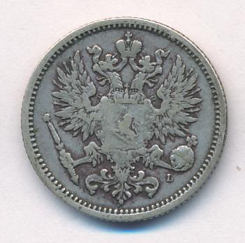 Лицевая сторона — российский двуглавый орел с гербом Великого княжества Финляндского на груди, оборотная — номинал и дата в венке из дубовых листьев. Проба — 750, нормативный вес — 2,55 грамма, гурт рубчатый.