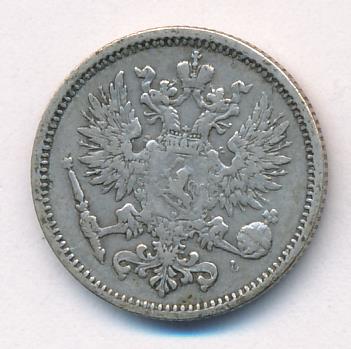 Лицевая сторона — российский двуглавый орел с гербом Великого княжества Финляндского на груди, оборотная — номинал и дата в венке из дубовых листьев. Проба — 750, нормативный вес — 2,55 грамма, гурт рубчатый.