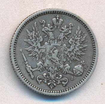 Лицевая сторона — российский двуглавый орел с гербом Великого княжества Финляндского на груди, оборотная — номинал и дата в венке из дубовых листьев. Проба — 750, нормативный вес — 2,55 грамма, гурт рубчатый.
