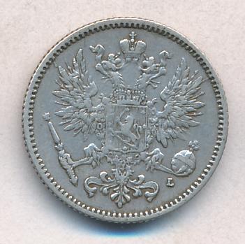 Лицевая сторона — российский двуглавый орел с гербом Великого княжества Финляндского на груди, оборотная — номинал и дата в венке из дубовых листьев. Проба — 750, нормативный вес — 2,55 грамма, гурт рубчатый.