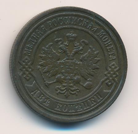 Лицевая сторона — двуглавый орел, надпись МЕДНАЯ РОССIЙСКАЯ МОНЕТА и обозначение номинала (две копейки); оборотная — обозначение номинала (2 копейки) в бусовом ободке и дата. Нормативный вес — 6,55 грамма, гурт рубчатый.