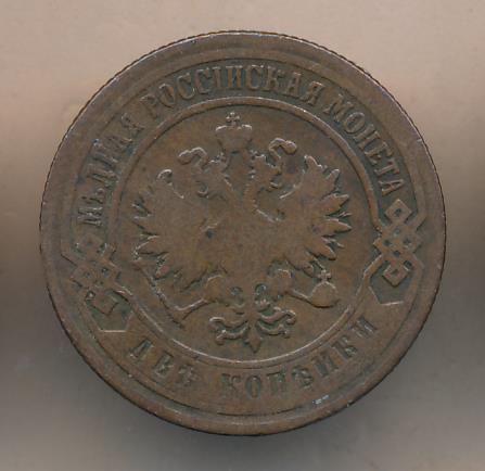 Лицевая сторона — двуглавый орел, надпись МЕДНАЯ РОССIЙСКАЯ МОНЕТА и обозначение номинала (две копейки); оборотная — обозначение номинала (2 копейки) в бусовом ободке и дата. Нормативный вес — 6,55 грамма, гурт рубчатый.