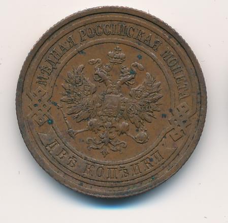 Лицевая сторона — двуглавый орел, надпись МЕДНАЯ РОССIЙСКАЯ МОНЕТА и обозначение номинала (две копейки); оборотная — обозначение номинала (2 копейки) в бусовом ободке и дата. Нормативный вес — 6,55 грамма, гурт рубчатый.