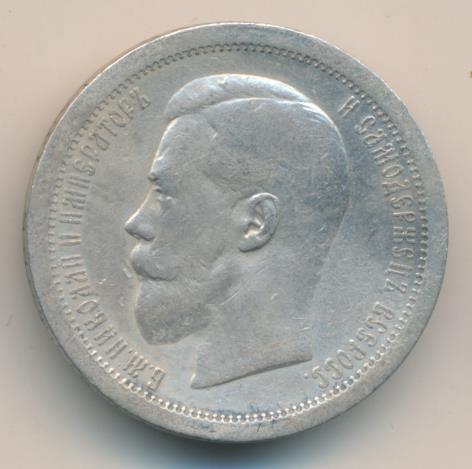 Лицевая сторона — портрет Николая II в круговой надписи «Б.М. НИКОЛАЙ II ИМПЕРАТОРЪ И САМОДЕРЖЕЦЪ ВСЕРОСС», оборотная — двуглавый орел, обозначение номинала (50 копеекъ) и дата.