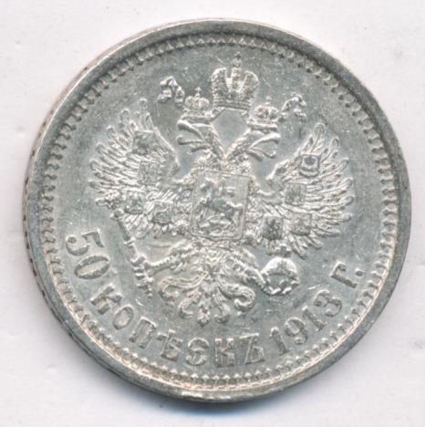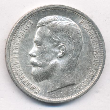 Лицевая сторона — портрет Николая II в круговой надписи «Б.М. НИКОЛАЙ II ИМПЕРАТОРЪ И САМОДЕРЖЕЦЪ ВСЕРОСС», оборотная — двуглавый орел, обозначение номинала (50 копеекъ) и дата.