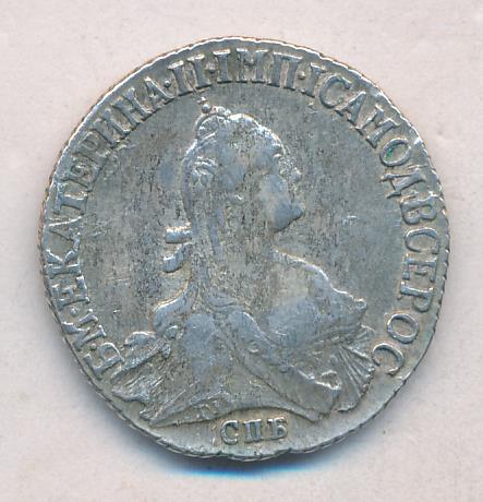 Выделяют два типа - «с шарфом на шее» и без него. Монеты 1764 года ММД со знаком гравера выполнены штемпелями полуполтин. На оборотной стороне монеты — двадцать счетных точек. Лицевая сторона — портрет императрицы и надпись «Б М ЕКАТЕРИНА II IМП I САМОД ВСЕРОС», оборотная — двуглавый орел, обозначение номинала цифрой и счетными точками и дата. Проба — 750, нормативный вес — 4,77 грамма, гурт — шнур.