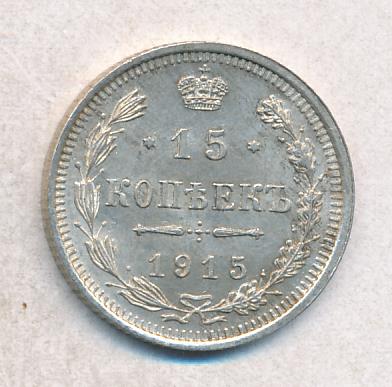 Лицевая сторона — гербовый орел, оборотная —обозначение номинала (15 копеекъ), окруженное венком из лавровой и дубовой ветвей и дата.