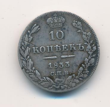 Лицевая сторона — новый гербовый орел с поднятыми крыльями, оборотная —обозначение номинала (10 копеекъ), окруженное венком из лавровой и дубовой ветвей и дата. Проба — 868, нормативный вес — 2,07 грамма.