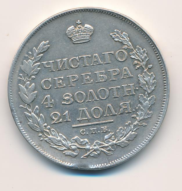 Выделяют три типа орла. Лицевая сторона - двуглавый орел, дата и надпись «МОНЕТА РУБЛЬ», оборотная — окруженная венком из лавровой и дубовой ветвей надпись «ЧИСТАГО СЕРЕБРА 4 ЗОЛОТН 21 ДОЛЯ». Проба — 868, нормативный вес — 20,73 грамма.